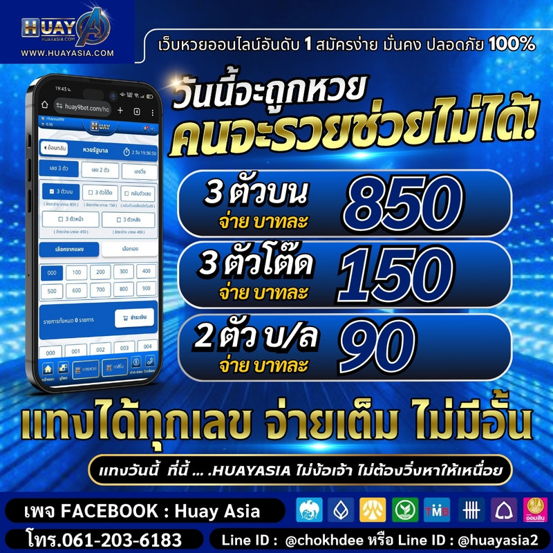 เว็บหวยออนไลน์ เว็บซื้อหวย HUAYASIA ครบวงจรจบทีเดียว